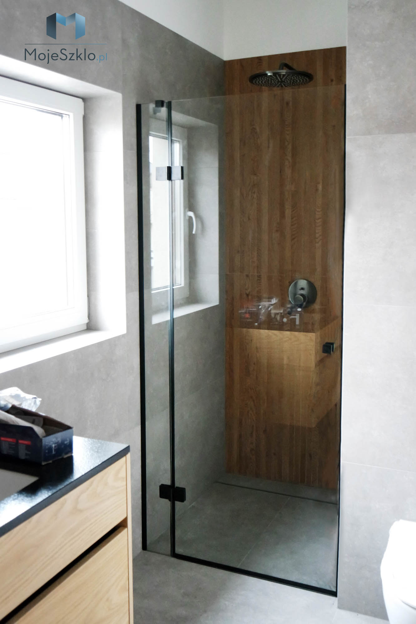 Kabina prysznicowa z czarnymi okuciami
