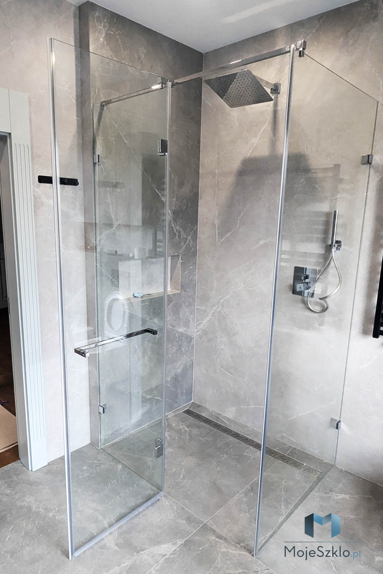 Jeśli kabina prysznicowa ma się składać tylko z drzwi szklanych, to cały zestaw składa się z 2 szt. zawiasów, gałki oraz uszczelek bocznych i dolnej. Warto pamiętać, że zalecana maksymalna szerokość drzwi to 85 cm.