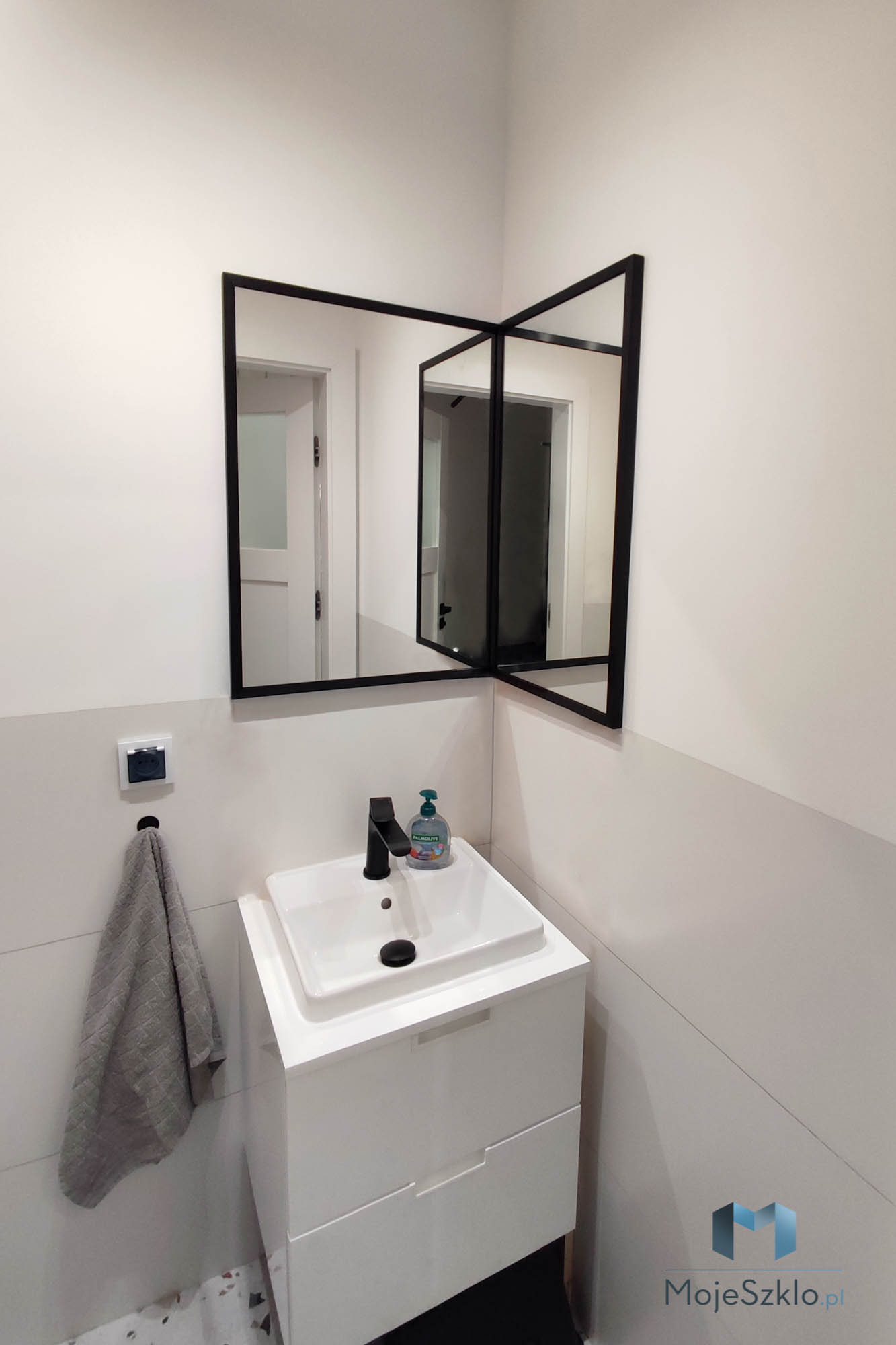 Tworząc aranżacje wnętrza warto zadbać o zachowanie pewnej spójności. Lustro w czarnej ramie będące dekoracją łazienki bardzo dobrze wygląda w towarzystwie kabiny prysznicowej, która posiada czarne okucia. Szczególnie ciekawym rozwiązaniem jest postawienie na kabinę typu walk-in. Całość wygląda niezwykle nowocześnie, a czarna rama dodaje wnętrzu charakteru.