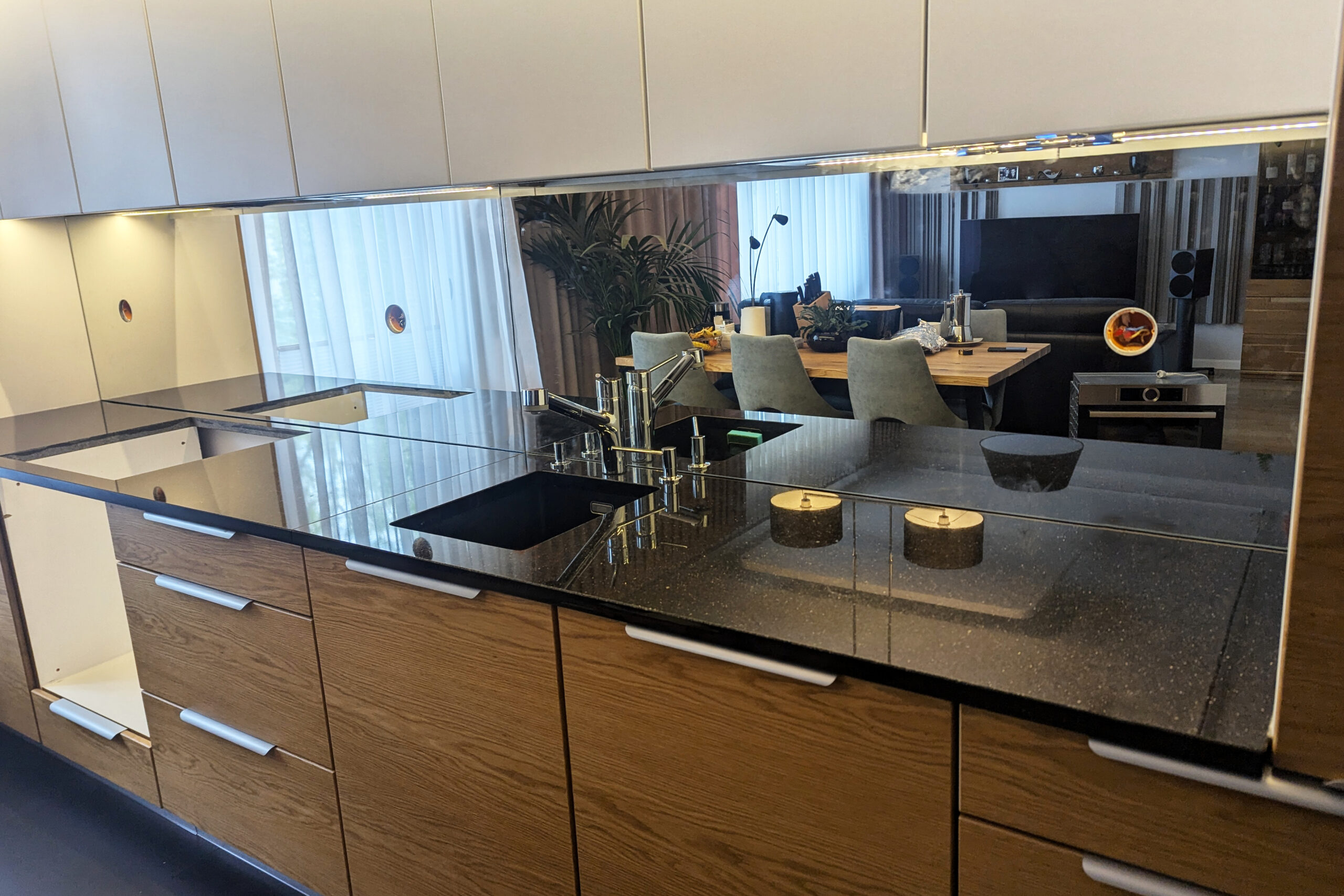 Lustro w kuchni. Panele lustrzane