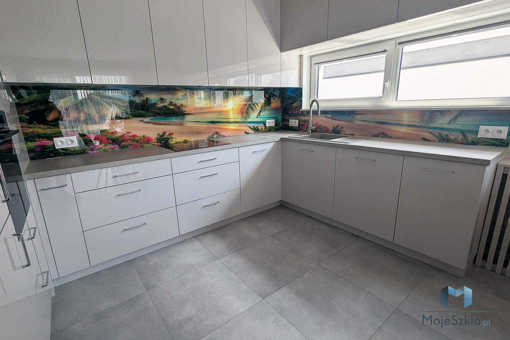 Panel szklany w kuchni to z pewnością rozwiązanie praktyczne, lecz warto zwrócić uwagę, że umieszczona na nim grafika może sprawić, iż ucieknie się nieco myślami od codziennych obowiązków, więc ich wykonywanie stanie się znacznie lżejsze. W tym celu warto wybrać szkło, na którym widnieje morze lub ocean w niesamowitym kolorze, zachwycające wybrzeże, plaża ze złotym piaskiem, urocze