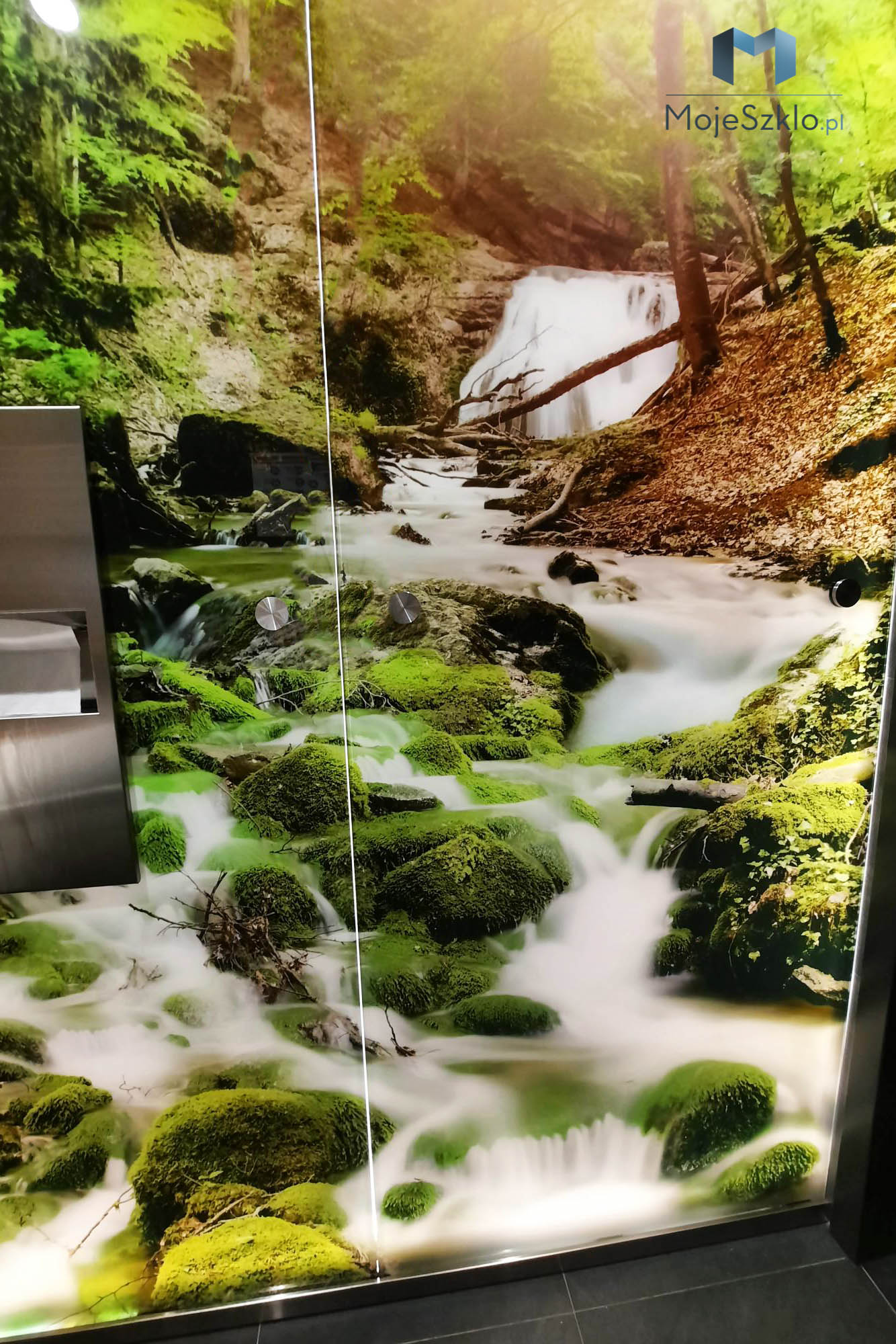 Wodospad to popularny temat doskonale sprawdza się na szklanych panelach, szczególnie w przestrzeniach łazienkowych