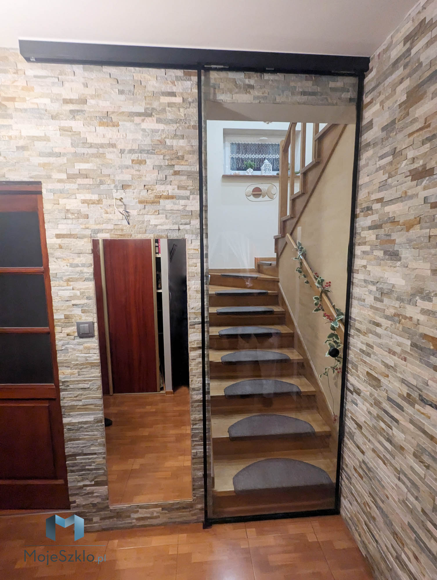 - Drzwi szklane przesuwne mogą być mocowane do nadproża nad drzwiami lub sufitu.