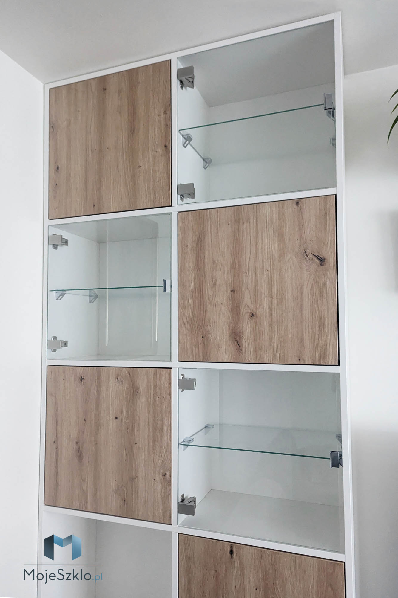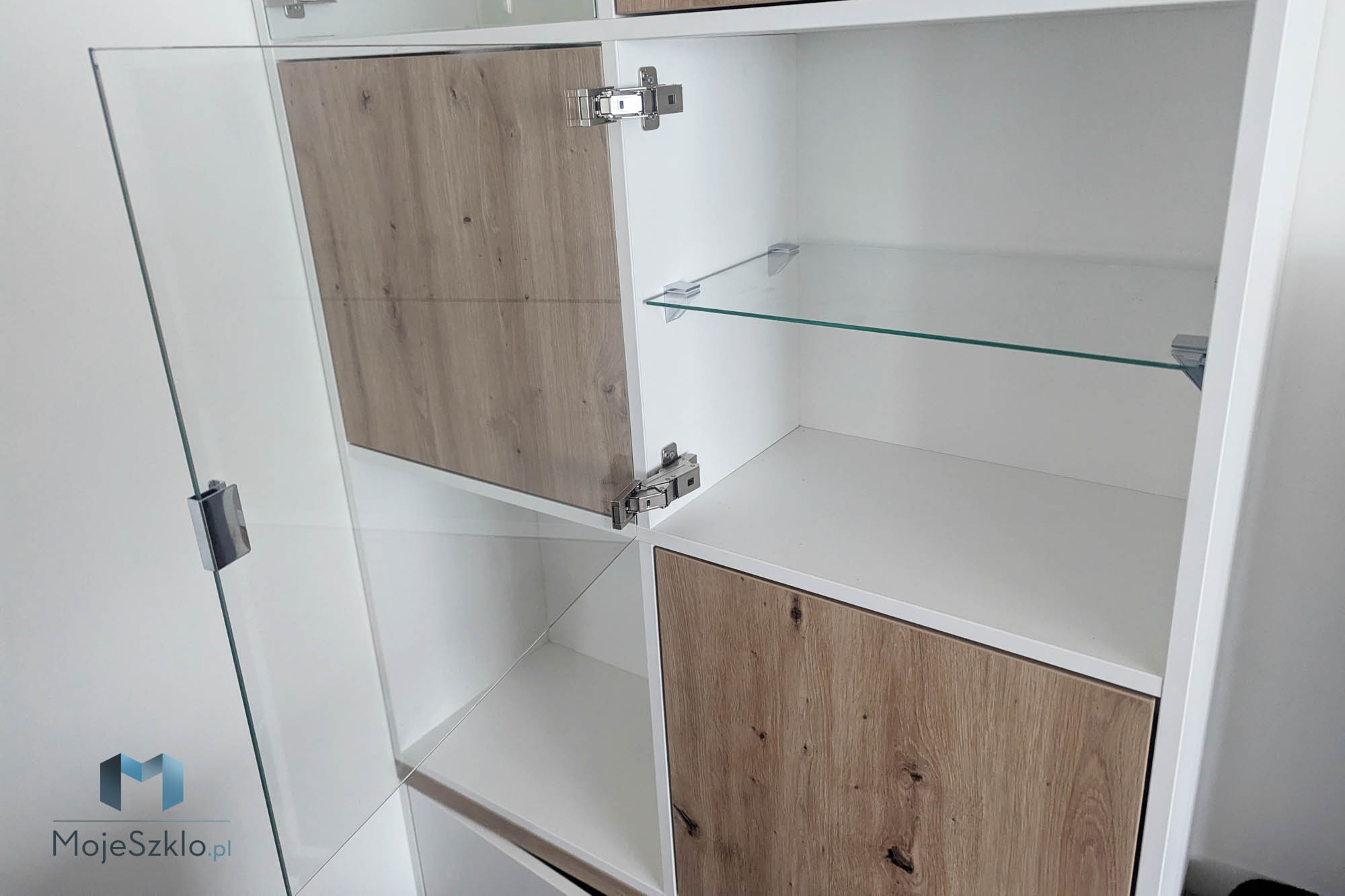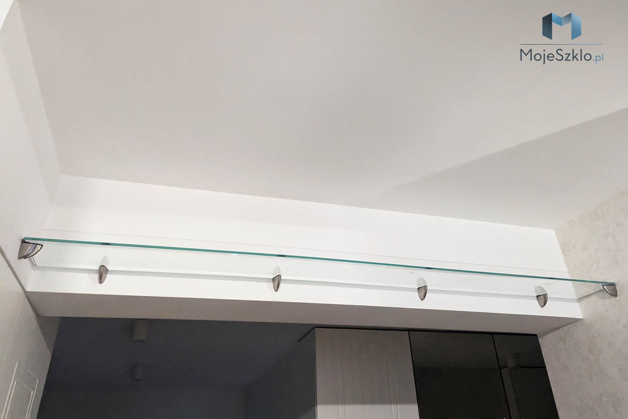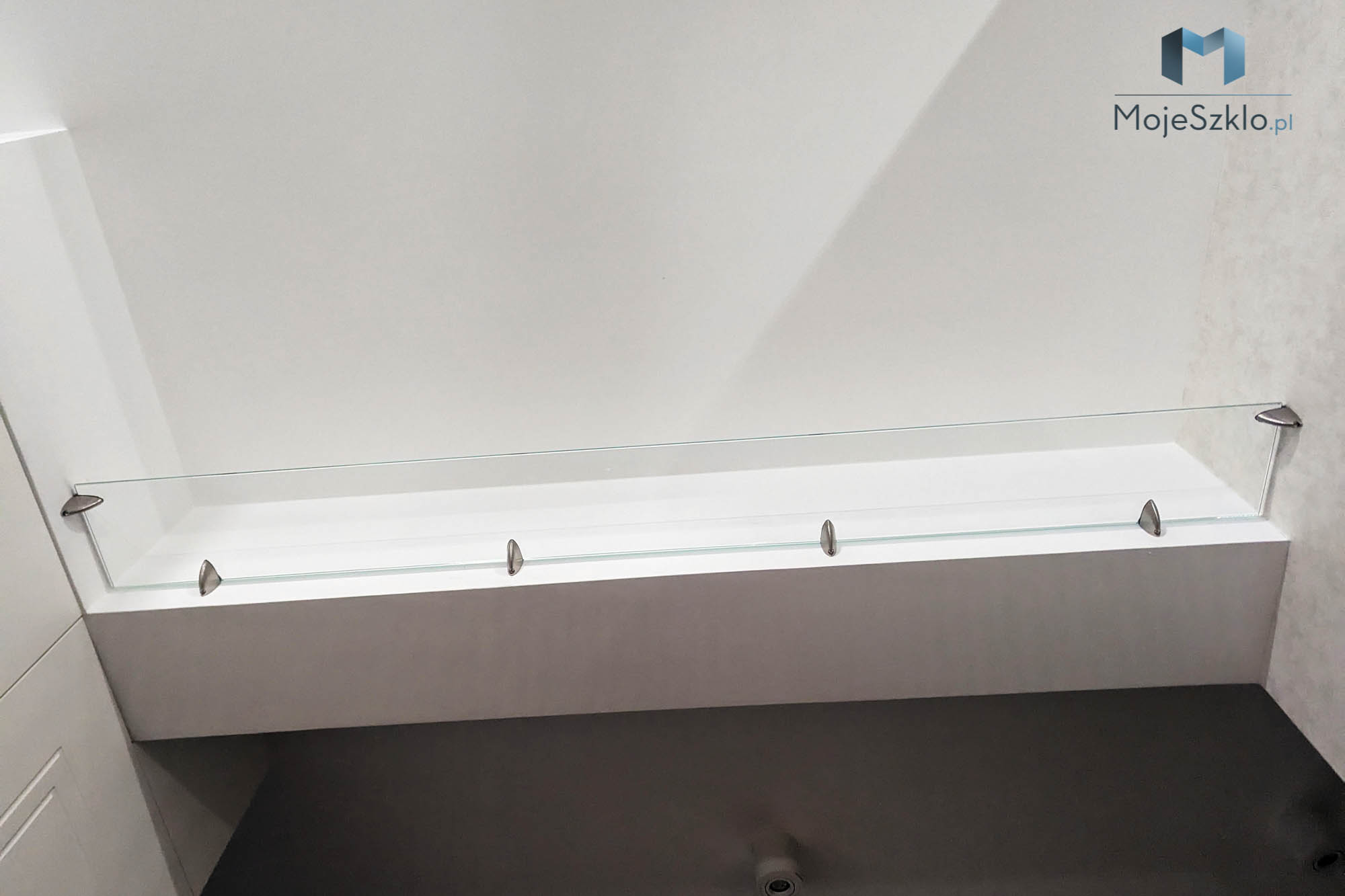 Półki wykonujemy w formie samego szkła hartowanego lub półki szklanej gotowej do montażu z uchwytami.