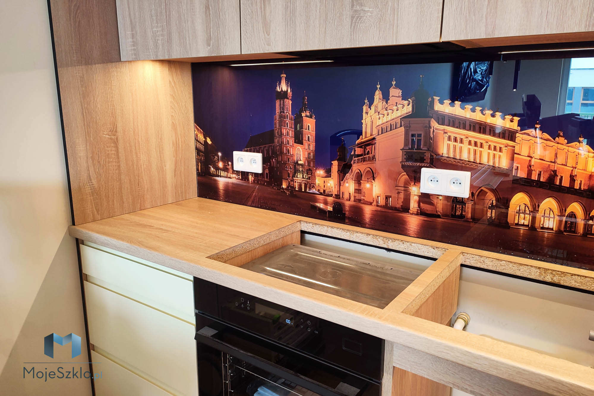 Na szklanych panelach może pojawić się grafika z widokiem z ulubionego miasta. W związku z tym, że najczęsciej wykonujemy montaże na terenie Krakowa i okolic, nasi klienci często decydują się na panele z widokiem na krakowski rynek. Na szybie może znaleźć się też panorama innego miasta. Niezależnie czy będzie to Warszawa, Lublin, Poznań czy Wrocław, chętnie przygotujemy taki panel!