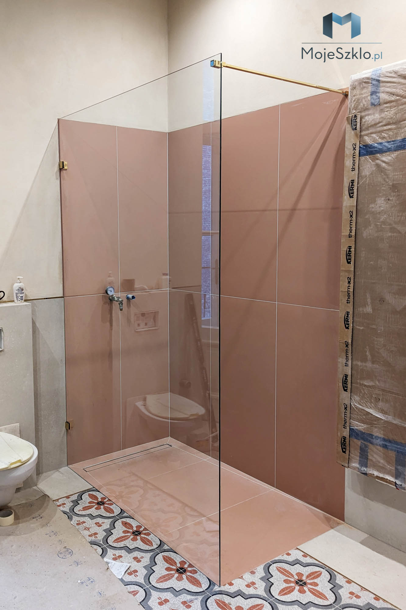 Kabina walk-in jest dostępna w dwóch wersjach – w złotych okuciach lub w złotej ramie.